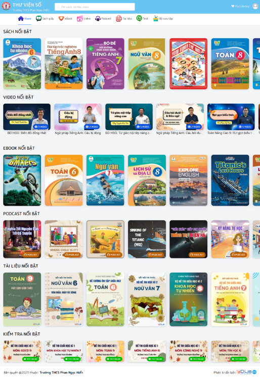 Ebook: Nhà trường cung cấp Ebook bộ sách giáo khoa, Ebook sách giáo viên mà trường đã chọn lựa và các Ebook học tiếng Anh bằng AI hay eBook tham khảo lên thư viện số để học sinh và giáo viên tham khảo khi không mang sách giấy bên cạnh.